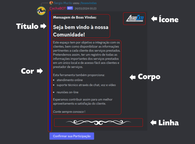 | CachaBOT formats your welcome message through a slash command! Since this method is limited in formatting, we’ve created a small formatting code: |
